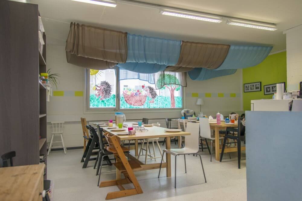 Die modernen Kita Räume sind hell und liebevoll gestaltet und bieten Platz zum Spielen, Basteln und das gemeinsame Essen. Auch ein Garten ist vorhanden. Der eigene sehr grosse Spielplatz direkt neben dem Haus lädt zum gemeinsamen Spielen ein. An schönen Tagen kann das Mittagessen am eigenen Grillplatz im Garten zubereitet und eingenommen werden.